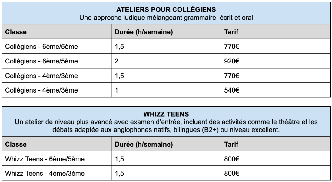 Pour obtenir un devis personnalisé, veuillez nous contacter à l’adresse suivante : info@experience-english.com